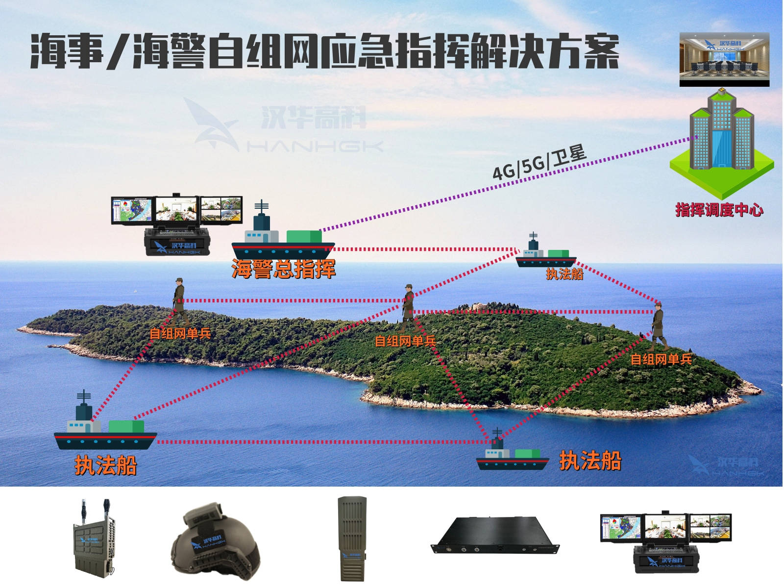 主頁(http://www.www.jjxinkai.com):海事海警無線自組網(wǎng)應(yīng)急通信系統(tǒng)解決方案 隨著我國海洋經(jīng)濟(jì)的快速發(fā)展,所面臨的海上安全形勢、海上和島嶼治安形勢日趨嚴(yán)峻,海上肇事、漁民遇險時有發(fā)生,海警部隊擔(dān)負(fù)著治安管理,不斷暢通信息鏈路,加強(qiáng)聯(lián)勤協(xié)作,突出巡查管控,充分發(fā)揮各自監(jiān)管職能,全力助推轄區(qū)平安海域建設(shè)和海洋經(jīng)濟(jì)高質(zhì)量發(fā)展。為了打擊海上和島嶼各種違法犯罪活動,維護(hù)國家海洋權(quán)益的任務(wù),執(zhí)法工作日益繁重,另外一些島嶼地勢復(fù)雜,無大噸位碼頭,大部分島嶼甚至無碼頭設(shè)施,而且島嶼周邊暗礁眾多,大型執(zhí)法船艇無法直接停靠在島上,只能派執(zhí)法艇登島,且島嶼沒有公網(wǎng)信號,執(zhí)法難度更大。 圍繞海上治安熱點(diǎn)難點(diǎn)問題,充分運(yùn)用各類系統(tǒng)終端,有效整合信息資源,加強(qiáng)預(yù)警性情報信息共享,及時通報海上走私、偷(私)渡、船舶越線作業(yè)和商漁船碰撞等各類情報信息,同時,常態(tài)化組織開展海上聯(lián)合執(zhí)法行動,緊盯碼頭、港口、航道、錨地和船舶等重點(diǎn)部位場所,加強(qiáng)巡邏管控,持續(xù)保持打擊、嚴(yán)懲各類違法犯罪活動的高壓態(tài)勢。為了應(yīng)對各種海洋復(fù)雜環(huán)境,提高海事局現(xiàn)場無線監(jiān)控圖像的自動化和信息化水平,建立一套海上無線應(yīng)急通信系統(tǒng),實(shí)現(xiàn)對前端的可視化監(jiān)控功能和遠(yuǎn)程視頻指揮調(diào)度功能。 HANHGK-海事/海警無線應(yīng)急通信系統(tǒng)主要由 Mesh 自組網(wǎng)單兵圖傳、Mesh自組網(wǎng)中繼臺、Mesh自組網(wǎng)船載設(shè)備、指揮調(diào)度系統(tǒng)、多屏便攜式指揮箱和相應(yīng)的執(zhí)法記錄儀、手麥等設(shè)備組成,是一種采用全新的“無線網(wǎng)狀網(wǎng)”理念設(shè)計的移動寬帶無線通信傳輸系統(tǒng)。系統(tǒng)采用同頻組網(wǎng)技術(shù),支持多跳中繼,每個節(jié)點(diǎn)可隨機(jī)移動,海警船編隊海上航行時的動態(tài)組網(wǎng),網(wǎng)絡(luò)拓?fù)潆S編隊變化時可快速路由重構(gòu),不影響整個編隊的無線通信。通過無線多跳自組網(wǎng)絡(luò),各個執(zhí)法艇和海警將現(xiàn)場視音頻信息及時匯報傳輸給指揮船,且彼此間也可進(jìn)行信息交互,而海警總指揮船根據(jù)收到的現(xiàn)場信息,協(xié)調(diào)整個海警巡邏隊的運(yùn)行與工作,實(shí)現(xiàn)可視化指揮調(diào)度。另外指揮船收到的音視頻信息也可以通過衛(wèi)星通信網(wǎng)或公網(wǎng)回傳給總指揮中心。通過科技手段維權(quán)執(zhí)法、應(yīng)急搜救、案件調(diào)查處理、執(zhí)法信息通報和重大活動保障等機(jī)制,海事/海警無線應(yīng)急通信系統(tǒng)場景應(yīng)用方案圖如下: