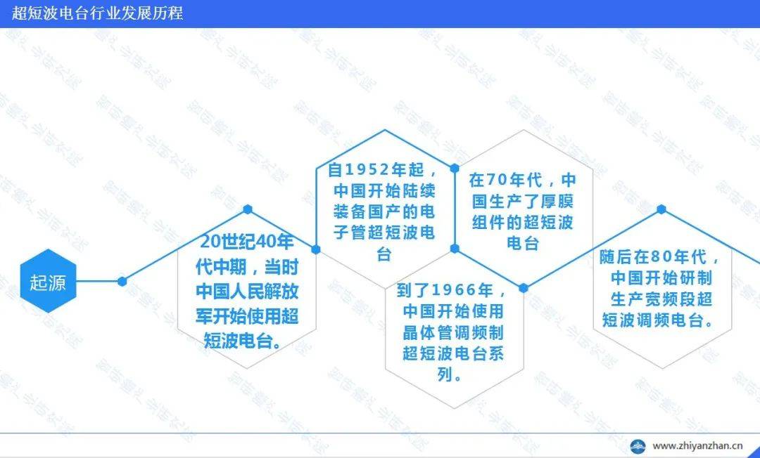 超短波電臺行業(yè)發(fā)展歷程 超短波電臺的發(fā)展歷程可追溯至20世紀(jì)40年代中期,當(dāng)時中國人民解放軍開始使用超短波電臺。自1952年起,中國開始陸續(xù)裝備國產(chǎn)的電子管超短波電臺。到了1966年,中國開始使用晶體管調(diào)頻制超短波電臺系列。 在70年代,中國生產(chǎn)了厚膜組件的超短波電臺。隨后在80年代,中國開始研制生產(chǎn)寬頻段超短波調(diào)頻電臺。至此,超短波電臺的技術(shù)已經(jīng)基本成熟,盡管研發(fā)周期長,經(jīng)費(fèi)投入大,但由于其出色的性能和廣泛的應(yīng)用領(lǐng)域,如電視廣播和無線話筒傳送音頻信號等,使得超短波電臺仍然具有很大的發(fā)展空間。 進(jìn)入21世紀(jì),科技的日新月異為超短波電臺的技術(shù)革新注入了新的活力。盡管其研制周期較長,研發(fā)經(jīng)費(fèi)投入巨大,但一旦裝備完成定型,型號設(shè)備的生命周期往往能持續(xù)5-10年。在這種情境下,軍隊(duì)客戶對于超短波電臺行業(yè)的企業(yè)而言顯得尤為優(yōu)質(zhì)。由于軍隊(duì)客戶對供應(yīng)商存在一定程度的技術(shù)路徑依賴,這使得他們展現(xiàn)出較強(qiáng)的粘性特征,進(jìn)一步鞏固了超短波電臺企業(yè)在市場中的地位。