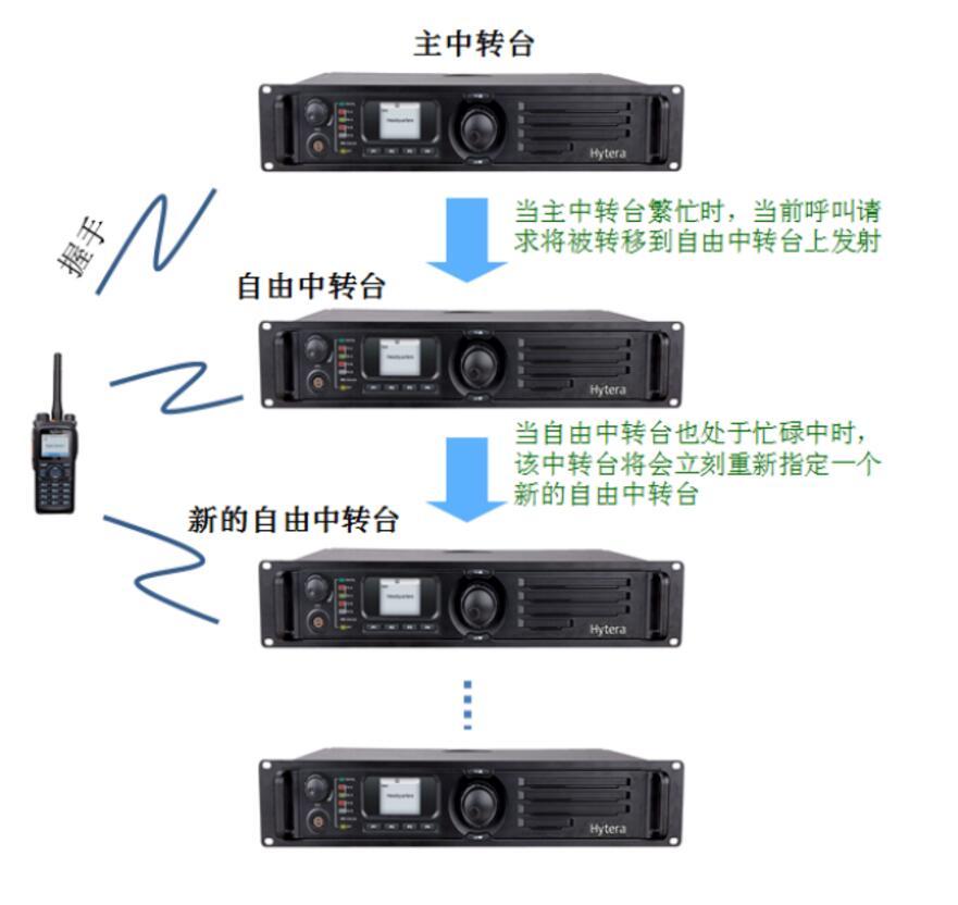主頁(http://www.www.jjxinkai.com):海能達(dá)XPT增強(qiáng)型無線對(duì)講虛擬集群技術(shù)介紹 對(duì)于無線對(duì)講系統(tǒng)來說,有針對(duì)一般商用的常規(guī)無線對(duì)講系統(tǒng),也有針對(duì)大型企事業(yè)單位用的集群無線對(duì)講系統(tǒng)。海能達(dá)推出的XPT集群系統(tǒng),稱為小集群,針對(duì)業(yè)務(wù)量較多,但是預(yù)算不是過高的情形下使用,比較合適。今天就伊利了解。海能達(dá)XPT增強(qiáng)型無線對(duì)講虛擬集群技術(shù)。 系統(tǒng)定義 XPT(ExtendedPseudoTrunk,增強(qiáng)型虛擬集群)是我海能達(dá)在Hytera自行開發(fā)的虛擬集群技術(shù)的基礎(chǔ)上、結(jié)合數(shù)字集群系統(tǒng)的優(yōu)點(diǎn)開發(fā)的一種新的分布式集群無線對(duì)講系統(tǒng)解決方案,該分布式集群系統(tǒng)有以下三大優(yōu)點(diǎn):不需要專門的控制信道、搭建成本較低、負(fù)載均衡。 系統(tǒng)背景 數(shù)字常規(guī)通信系統(tǒng)雖然有機(jī)地結(jié)合了雙向無線通信和數(shù)字技術(shù)的優(yōu)點(diǎn),兼具了傳統(tǒng)模擬系統(tǒng)的諸多優(yōu)勢(shì)和功能,但是一個(gè)中轉(zhuǎn)臺(tái)在同一時(shí)間最多可以支持兩路呼叫,導(dǎo)致信道資源的使用受限,無法支持更多的終端同時(shí)發(fā)起不同呼叫。而數(shù)字集群系統(tǒng)雖然單站覆蓋范圍更大,抗環(huán)境噪聲能力更強(qiáng),且信道資源可以自動(dòng)分配,但是集群系統(tǒng)運(yùn)行環(huán)境搭建復(fù)雜、常規(guī)系統(tǒng)升級(jí)到集群系統(tǒng)不便利,并且集群系統(tǒng)需要大量的設(shè)備支持,需要投入很大的成本。XPT是一款經(jīng)濟(jì)適用的數(shù)字升級(jí)解決方案,通過將多臺(tái)中轉(zhuǎn)臺(tái)連接在一起組建一個(gè)虛擬集群系統(tǒng),適用于需要數(shù)字常規(guī)通信系統(tǒng)的專業(yè)數(shù)字關(guān)鍵業(yè)務(wù)用戶,它擁有集群技術(shù)的規(guī)模、高效、更清晰的音頻質(zhì)量,而且通過共享中轉(zhuǎn)臺(tái)的邏輯信道資源,擴(kuò)展了通信容量,可使更多用戶依靠單一站點(diǎn)進(jìn)行高密度的語音和數(shù)據(jù)通信。 工作原理 XPT將同一區(qū)域內(nèi)多個(gè)工作于數(shù)字中轉(zhuǎn)模式的中轉(zhuǎn)臺(tái)集合起來組成一個(gè)XPT站點(diǎn),通過共享站內(nèi)中轉(zhuǎn)臺(tái)的邏輯信道,允許終端使用站點(diǎn)中的所有中轉(zhuǎn)臺(tái)進(jìn)行通信并且不需要專門的控制信道,從而提升信道的利用率。在XPT系統(tǒng)模式下,一個(gè)呼叫總是優(yōu)先在終端的主中轉(zhuǎn)臺(tái)上進(jìn)行發(fā)起,當(dāng)終端所處的中轉(zhuǎn)臺(tái)(主中轉(zhuǎn)臺(tái))處于忙碌狀態(tài)時(shí),終端將到其他空閑中轉(zhuǎn)臺(tái)(自由中轉(zhuǎn)臺(tái))上發(fā)起語音或者數(shù)據(jù)業(yè)務(wù),減小了終端接入系統(tǒng)所需的等待時(shí)間,并能在保證一定業(yè)務(wù)質(zhì)量的前提下最大限度地?cái)U(kuò)展通信容量。此外,在同一時(shí)刻所有邏輯信道被同時(shí)占用的概率很低,因此,在XPT系統(tǒng)下呼叫被拒的概率將遠(yuǎn)低于僅有一個(gè)常規(guī)信道可供接入的情況,可以幫助企業(yè)用戶同一個(gè)系統(tǒng)下盡可能快速高效進(jìn)行語音通信和數(shù)據(jù)通信。 1)XPT集群協(xié)議