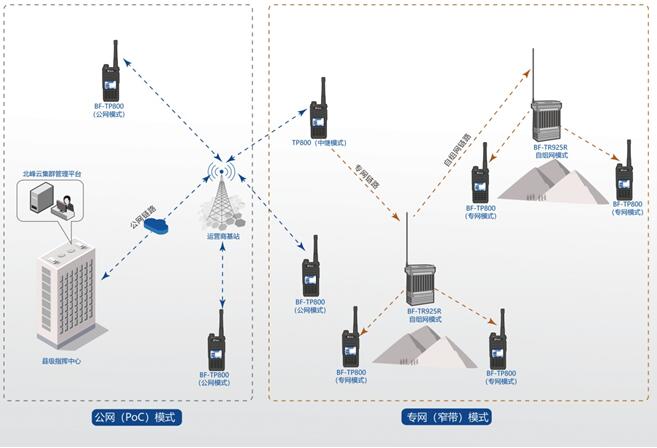北峰TP800公專融合對講機(jī)整體通信優(yōu)勢 綜合上述城市管理綜合執(zhí)法人員的需求后,北峰BF-TP800公專融合對講機(jī)提供了一套兼容專網(wǎng)、公網(wǎng)、公專混合、中繼4種通信模式的全新通信集群管理方案。融合單一專網(wǎng)與單一公網(wǎng)的優(yōu)勢,讓城市管理執(zhí)法人員可根據(jù)現(xiàn)場實(shí)際情況選擇通信模式,保障應(yīng)急調(diào)度決策的及時性和科學(xué)性。