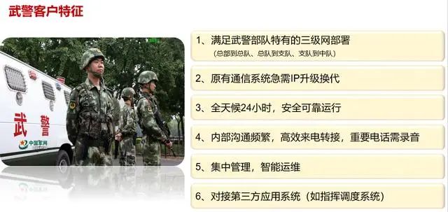 主頁(http://www.www.jjxinkai.com):方案精選 | 迅時武警部隊專網(wǎng)通信解決方案 武警部隊的三級網(wǎng)是集數(shù)據(jù)、語音、視頻等業(yè)務(wù)為一體的綜合網(wǎng)絡(luò)系統(tǒng),它是為了滿足武警部隊特有的三級(總部到總隊、總隊到支隊、支隊到中隊)指揮系統(tǒng)而建立的,旨在打造現(xiàn)代化武警部隊信息化高速公路。 另一方面,武警部隊對命令下達和內(nèi)部通訊要求非常嚴格,并且具有高度保密性,部隊與PSTN的通話也有非常嚴格的控制。