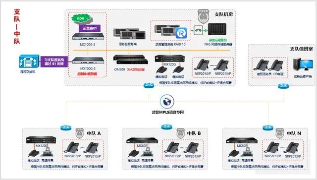 迅時武警/部隊專網(wǎng)通信解決方案,依托武警專網(wǎng),對傳統(tǒng)語音通信設(shè)備進行IP化升級改造。基于IP通信技術(shù)的分布式架構(gòu),可快速部署到武警/部隊的各個單位。
