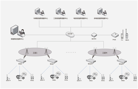 ![]() 設(shè)計原則 ① 據(jù)不同鐵路段所轄范圍和地形的實測結(jié)果確定所需的基站數(shù)量(以7-10公里建設(shè)一個基站為宜),再利用B/S架構(gòu)和全IP化技術(shù),實現(xiàn)鐵路不同站點之間智能IP互聯(lián)。 ② 每個基站用鐵路沿線的機房、鐵塔和鏈路進行智能IP鏈路。 ③ 統(tǒng)內(nèi)所有聯(lián)網(wǎng)基站組建成1個獨立子網(wǎng),工務(wù)、電務(wù)、供電及車輛等部門配置終端設(shè)備獨立通信,終端配備單呼、組呼、全呼、臨時組呼叫、動態(tài)組呼叫等豐富語音調(diào)度功能。 ④ 對路局、段和車站可配置有線調(diào)度平臺,通過客戶端及指揮坐席調(diào)度臺可以對系統(tǒng)內(nèi)的終端進行指揮調(diào)度,實現(xiàn)在GIS平面地圖、衛(wèi)星地圖下的可視化調(diào)度、指令下發(fā)及語音/信息等調(diào)度。 ⑤ 各級車站調(diào)度員或管理員創(chuàng)建巡檢任務(wù),并下發(fā)到指定工作人員終端(如例:巡檢路線規(guī)劃、巡檢區(qū)域圍欄、交換班打卡、巡查點打卡、衛(wèi)星定位、數(shù)字錄音等),調(diào)度員在調(diào)度臺中可以實時查看人員工作情況。 ⑥ 工作人員在巡檢或工作任務(wù)執(zhí)行過程中,發(fā)現(xiàn)緊急情況或異常情況,可以通過手持終端上傳上報問題,當(dāng)人員遭遇意外情況,可立即進行按鍵求救,調(diào)度臺可以根據(jù)現(xiàn)場情況調(diào)動附近人員進行支援或者指導(dǎo)現(xiàn)場工作人員進行處理。