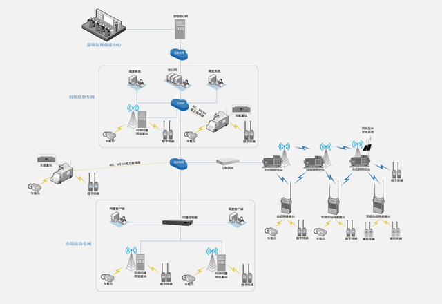 ![]() (1) 以 370MHz 數(shù)字集群基站覆蓋市區(qū)和人口密集區(qū),作為應(yīng)急通信的基礎(chǔ)網(wǎng),帶來(lái)較強(qiáng)的信號(hào)穩(wěn)定性和抗干擾能力,能夠滿足日常及應(yīng)急情況下的基本通信需求。 (2) 自組網(wǎng)基站可根據(jù)各省自然災(zāi)害發(fā)生特點(diǎn)和通信需求靈活部署。在公網(wǎng)基站無(wú)法正常工作或通信盲區(qū)快速搭建臨時(shí)通信網(wǎng)絡(luò)。搭配BF - SCP810 可切換至窄帶專(zhuān)網(wǎng)對(duì)講模式進(jìn)行專(zhuān)網(wǎng)通信的建鏈和網(wǎng)絡(luò)覆蓋,無(wú)需借助基站即可極速為現(xiàn)場(chǎng)搭建語(yǔ)音、短消息等通道保障。 (3) 在極端天氣導(dǎo)致部分區(qū)域公網(wǎng)信號(hào)不穩(wěn)定時(shí),窄帶專(zhuān)網(wǎng)通信可作為保底通信手段,確保通信不中斷。救援人員可使用其快速構(gòu)建語(yǔ)音通信網(wǎng)絡(luò),保障應(yīng)急通訊,隨時(shí)傳遞人員/物資下沉情況等信息。 (4) 在無(wú)法通過(guò)傳統(tǒng)網(wǎng)絡(luò)覆蓋的情況下,結(jié)合自組網(wǎng)固定站和衛(wèi)星通信技術(shù),確保在復(fù)雜地形或斷電斷網(wǎng)情況下仍能保持通信暢通。通過(guò)衛(wèi)星通信鏈路,實(shí)現(xiàn)單兵與前后方指揮部的音視頻雙向傳輸,滿足應(yīng)急救援中對(duì)實(shí)時(shí)信息傳遞的高要求。 方案亮點(diǎn) 標(biāo)準(zhǔn)認(rèn)證與兼容性: 系統(tǒng)以 370MHz 國(guó)家應(yīng)急通信標(biāo)準(zhǔn)技術(shù)設(shè)計(jì),具備卓越的兼容性,能滿足多樣化的設(shè)備連接需求,確保應(yīng)急現(xiàn)場(chǎng)通信 “拉得動(dòng)、聯(lián)得上、聽(tīng)得清、調(diào)得動(dòng)”。 全域覆蓋與分級(jí)管理: 形成以 370MHz 數(shù)字集群基站為基礎(chǔ),自組網(wǎng)基站為輔的覆蓋模式,貫穿各指揮層級(jí)、聯(lián)通各橫向協(xié)作單位,構(gòu)建語(yǔ)音指揮一張網(wǎng)。同時(shí)實(shí)現(xiàn)分級(jí)管理,各單位可獨(dú)立通話,互不影響,應(yīng)急時(shí)通過(guò)基站聯(lián)網(wǎng)調(diào)度,實(shí)現(xiàn)可拆可聯(lián)、統(tǒng)一指揮調(diào)度。 平戰(zhàn)結(jié)合與高效轉(zhuǎn)換: 采用 370MHz 數(shù)字集群固定站與移動(dòng)基站相結(jié)合,以及自組網(wǎng)固定站靈活選址的方式,確保關(guān)鍵區(qū)域通信盲區(qū)覆蓋和通信指揮穩(wěn)定暢通。各基站可采用市電結(jié)合 UPS 后備電源、市電加柴油發(fā)電機(jī)、風(fēng)光互補(bǔ)等多種供電方案。既能滿足應(yīng)急部門(mén)日常指揮調(diào)度需求,又能在 “三斷” 情況下迅速轉(zhuǎn)換為應(yīng)急通信模式,保障通信需求。 基層保障與業(yè)務(wù)分流: 以雙段自組網(wǎng)設(shè)備為基層隊(duì)伍的伴隨通信保障設(shè)備,其跨段中繼設(shè)計(jì)實(shí)現(xiàn)一機(jī)兩用,既可以單獨(dú)工作又可以組網(wǎng)工作。指揮網(wǎng)上下級(jí)關(guān)系清晰,保障本級(jí)中繼的同時(shí)可與上級(jí)建聯(lián),并聯(lián)通上級(jí)與本級(jí)指揮網(wǎng)實(shí)現(xiàn)越級(jí)指揮,在保障通信暢通的同時(shí)實(shí)現(xiàn)業(yè)務(wù)分流,減輕大網(wǎng)壓力,確保應(yīng)急條件下通信保障的可靠、持久。