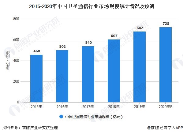衛(wèi)星通信行業(yè)在國防科技、社會管理、大眾生活中發(fā)揮著重要的作用,為發(fā)達(dá)國家維護(hù)國家安全、提升企業(yè)運營效率、改善民生生活、搶占經(jīng)濟(jì)科技競爭制高點的戰(zhàn)略選擇。 國家已出臺多項政策措施鼓勵推動衛(wèi)星在各行業(yè)的規(guī)模化應(yīng)用、商業(yè)化服務(wù)及國際化拓展,行業(yè)面臨重大的發(fā)展機(jī)遇。調(diào)研數(shù)據(jù)顯示,2019年,我國衛(wèi)星通信市場規(guī)模約為682億元,預(yù)計2020年,全國衛(wèi)星通信行業(yè)市場規(guī)模將達(dá)到723億元。