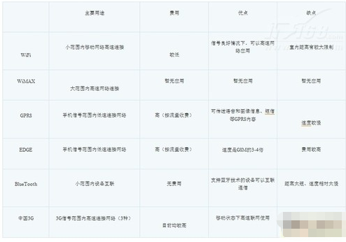 主頁(http://www.www.jjxinkai.com):滿足多元化發(fā)展的常見無線技術(shù)的對(duì)比 描述3G無線通信的到來,預(yù)示著無線技術(shù)及其應(yīng)用已經(jīng)邁上了一個(gè)新的臺(tái)階。無線技術(shù)與人們的工作和生活息息相關(guān),在IT通信業(yè)界以及整個(gè)人類社會(huì)的發(fā)展過程中起著舉足輕重的作用。然而,得益于科技和人文社會(huì)的創(chuàng)新環(huán)境,無線技術(shù)標(biāo)準(zhǔn)眾多出現(xiàn)了百家爭(zhēng)鳴的景象,這既是滿足不同場(chǎng)合和用戶的個(gè)性化需要,也是技術(shù)多元化發(fā)展集中體現(xiàn)。 目前使用較廣泛的無線通信技術(shù)是藍(lán)牙(Bluetooth),無線局域網(wǎng)802.11(Wi-Fi)和紅外數(shù)據(jù)傳輸(IrDA)。同時(shí)還有一些具有發(fā)展?jié)摿Φ慕酂o線技術(shù)標(biāo)準(zhǔn),它們分別是:ZigBee、WiMax、超寬頻(Ultra WideBand)、短距通信(NFC)、WiMedia、GPRS、EDGE、無線1394。它們都有其立足的特點(diǎn),或基于傳輸速度、距離、耗電量的特殊要求;或著眼于功能的擴(kuò)充性;或符合某些單一應(yīng)用的特別要求;或建立競(jìng)爭(zhēng)技術(shù)的差異化等。但是沒有一種技術(shù)可以完美到足以滿足所有的需求。 1、藍(lán)牙技術(shù)(Bluetooth Technology) 藍(lán)牙技術(shù)是使用2.4GHz的ISM公用頻道的一種短距離、低成本的無線接入技術(shù),主要應(yīng)用于近距離的語言和數(shù)據(jù)傳輸業(yè)務(wù)。藍(lán)牙設(shè)備的工作頻段選用全世界范圍內(nèi)都可自由使用的2.4GHz ISM頻段。用戶無需申請(qǐng)可使用,頻道采用23個(gè)或79個(gè)頻道間隔為1MHz時(shí)分雙工方式。采用跳頻速率為1600跳/ 秒,使得藍(lán)牙系統(tǒng)具有足夠高的抗干擾能力,設(shè)備簡(jiǎn)單性能優(yōu)越。根據(jù)其發(fā)射功率的不同,藍(lán)壓設(shè)備之間的有效通訊距離大約為10-100m。 藍(lán)牙設(shè)備組網(wǎng)靈活,提供點(diǎn)對(duì)點(diǎn)和點(diǎn)對(duì)多點(diǎn)的無線連接基于TDMA原理組網(wǎng),藍(lán)牙技術(shù)安全除采用跳頻擴(kuò)展技術(shù)和低發(fā)射功率等常規(guī)安全技術(shù)外還采用三級(jí)安全模式進(jìn)行管理控制。 隨近年來個(gè)人通信的發(fā)展,藍(lán)牙技術(shù)得到廣泛的推廣應(yīng)用,其技術(shù)成熟并開放式的系統(tǒng)開發(fā)模式,目前最新版的EDR Z-OT速率達(dá)到3Mbps。廣泛應(yīng)用于手機(jī)、耳機(jī)、筆記本電腦、PDA等個(gè)人電子消費(fèi)品中。 2、Wi-Fi(IEEE 802.11):Wireless Fidelity Wi-Fi使用IEEE 802.11b或802.11a無線電技術(shù)提供安全、可靠、快速的無線連通性。Wi-Fi網(wǎng)絡(luò)可以使用來互連電腦鏈接電腦上互連網(wǎng)。Wi-Fi網(wǎng)絡(luò)在無執(zhí)照的2.4和5千兆Hz的無線電頻帶經(jīng)營(yíng),數(shù)據(jù)速率可達(dá)11Mbps(802.11b)-54Mbps(802.11a),或包含以上兩條頻帶的產(chǎn)品(雙重頻帶)。 Wi-Fi覆蓋范圍很廣,可達(dá)100m,但其電波易受干擾速度較快。提供個(gè)人及公司內(nèi)部人員使用局域網(wǎng),用戶不再使用Cable上網(wǎng)。由于使用電波作為傳送媒介,資料包被截取的可能性高,這也成為用戶所擔(dān)心問題。現(xiàn)在Wi-Fi產(chǎn)品利用WED(Wired Equivalent Privacy)技術(shù)作資料加密之用。然而,其保安的效能卻倍受質(zhì)疑,另一方面,支援新一代(Wi-Fi Protected Access)加密方式的Wi-Fi產(chǎn)品亦相繼出現(xiàn)。