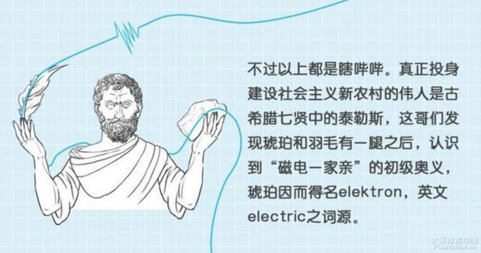 人類歷史上第一個關(guān)于“電”的記錄,在公元前6世紀(jì)前后,古希臘哲學(xué)家泰勒斯發(fā)現(xiàn)摩擦后的琥珀可以吸起絨毛和木屑,遍認(rèn)為這些死物內(nèi)部其實有生命靈魂的,只是肉眼看不見而已。