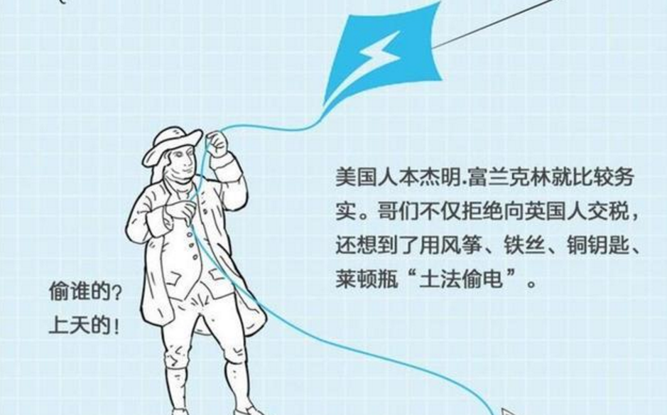 電是抓住了,但如何源源不斷地捕捉/生產(chǎn)電呢?這個問題要到18世紀(jì)中葉才能回答,答題者是美國開國大神本杰明·富蘭克林(Benjamin Franklin),他從蒼天哪里取得了雷電,從暴君那里取得了民權(quán)。