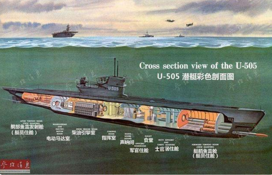 著名的德國U型潛艇橫跨了第一次和第二次世界大戰(zhàn),那時候沒有核反應(yīng)堆,潛艇水下航行速度很慢、續(xù)航很短,那是因為沒有氧氣供柴油機(jī)工作時就只能使用電池提供能源。
