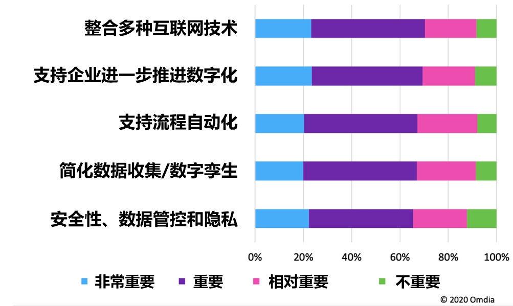 趨勢(shì)一:疫情下, 企業(yè)數(shù)字化趨勢(shì)日益突出,并持續(xù)加速 疫情再一次證明了企業(yè)數(shù)字化和自動(dòng)化的重要性,專網(wǎng)和 5G 是實(shí)現(xiàn)這些目標(biāo)的解決方案之一。例如,根據(jù) Omdia 的調(diào)研,37% 的受訪者預(yù)計(jì),由于疫情大流行和企業(yè)優(yōu)先事項(xiàng)的轉(zhuǎn)變,他們對(duì) 5G 企業(yè)服務(wù)和方案的預(yù)算會(huì)增加。疫情還加速了某些垂直行業(yè)對(duì)私網(wǎng)的需求,例如醫(yī)療保健(包括應(yīng)急處置)和教育。 另一方面,疫情也拖延了市場(chǎng),減緩了企業(yè)開展無線專網(wǎng)項(xiàng)目、簽定商業(yè)合同、完成銷售周期以及在實(shí)施層面上部署網(wǎng)絡(luò)設(shè)備的速度。