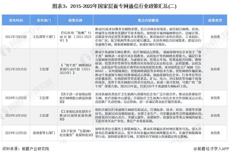 2、國家層面專網(wǎng)通信行業(yè)政策匯總及解讀 ——國家層面專網(wǎng)通信行業(yè)政策匯總 專網(wǎng)通信作為一種安全可靠的無線服務(wù)的專業(yè)網(wǎng)絡(luò),近些年來,國家陸續(xù)出臺各項產(chǎn)業(yè)政策,引導(dǎo)專網(wǎng)通信行業(yè)發(fā)往規(guī)范化、高端化發(fā)展,推動專網(wǎng)通信在公共安全、公共事業(yè)和工商業(yè)等各方面的應(yīng)用,鼓勵通信行業(yè)轉(zhuǎn)型升級、提質(zhì)增效,為通信行業(yè)的發(fā)展提供了良好的環(huán)境。