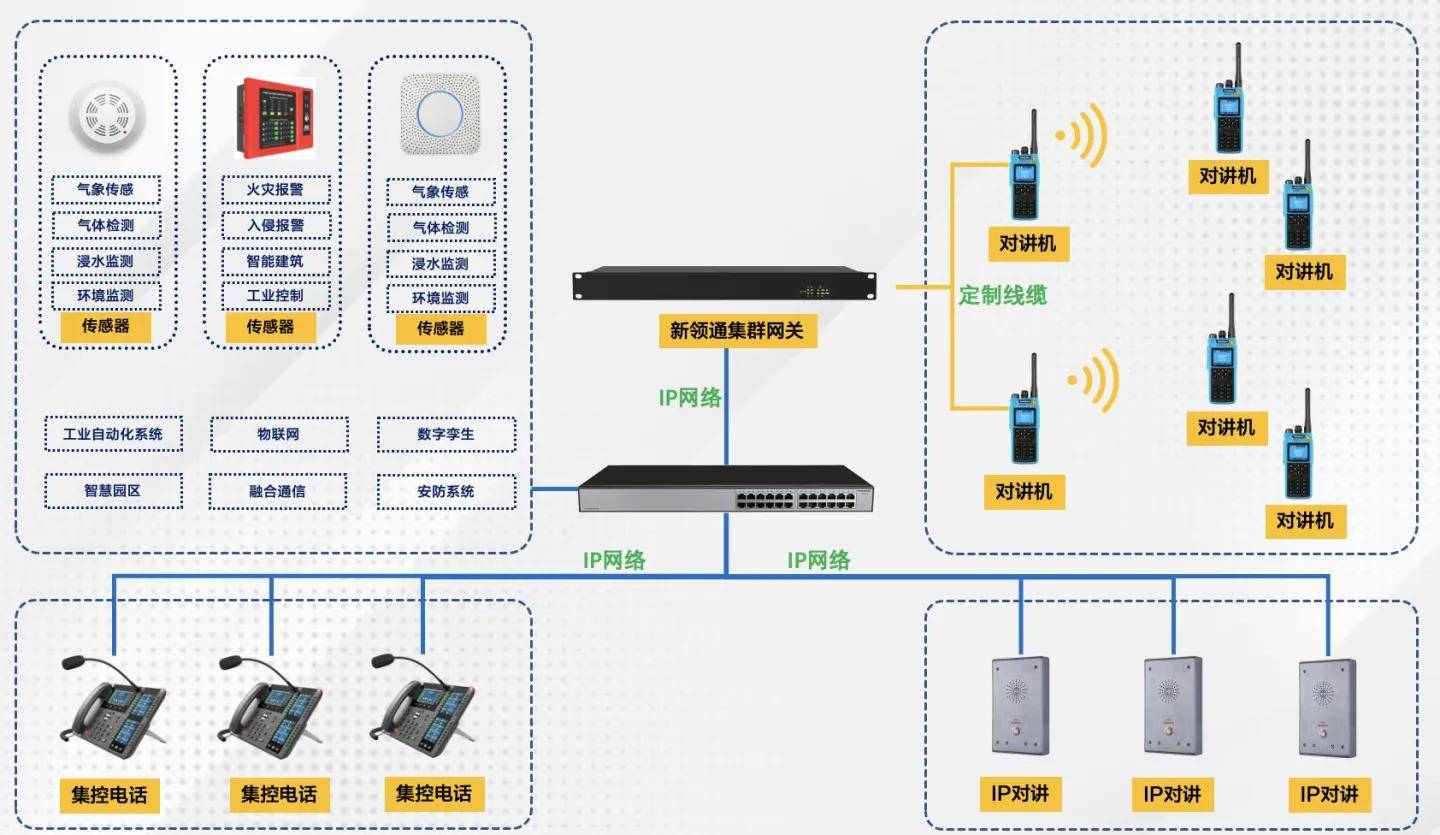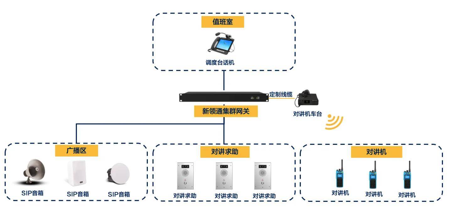 新領(lǐng)通GRW4000系列集群網(wǎng)關(guān),除了具有集群對講接入能力,還提供了多達200用戶的SIP服務(wù)器能力,制式各種SIP電話,IP對講,各種基于SIP的電話網(wǎng)關(guān)。通過一臺設(shè)備,可以滿足各種語音對講調(diào)度和簡化的指揮,對講能力,滿足各種語音融合通信系統(tǒng)的應(yīng)用需求。 方法五:與IP廣播系統(tǒng)互通實現(xiàn)應(yīng)急響應(yīng)和廣播