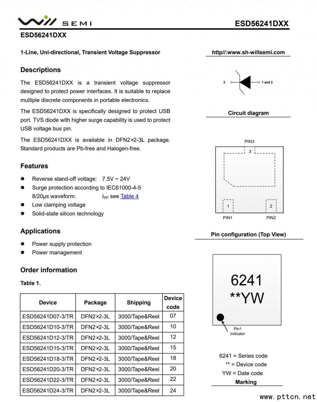 WillSemi韋爾半導體ESD56241DXX詳細資料圖。