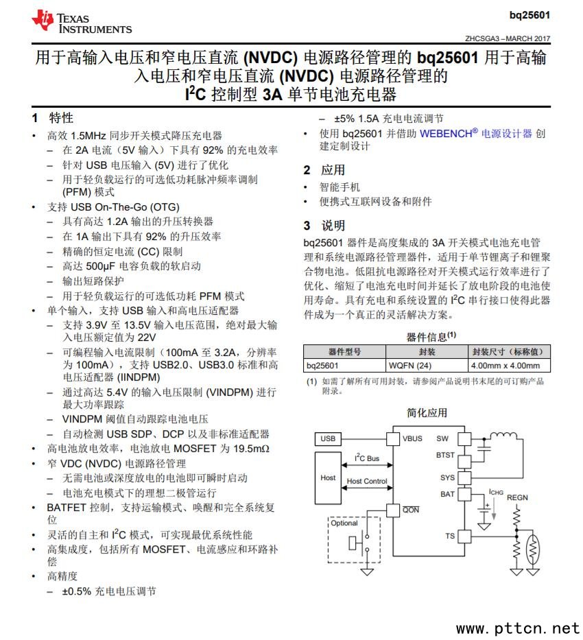TI德州儀器BQ25601詳細資料圖。
