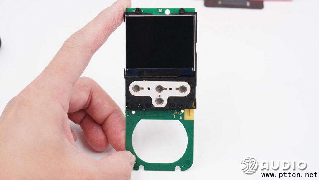 主板單元一側結構一覽,設置支架固定屏幕和功能按鍵,揚聲器位置鏤空。