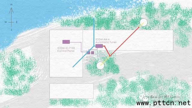 我們用兩段約10m長的軍用Dipole銅線,接到天調(diào)地線并分別向東和向南分開垂放在樓面和一側(cè)的金屬棚頂。 無論是野外或是海島架臺,天線的架設(shè)可能是此行最大的經(jīng)驗(yàn)收獲。無論那種架設(shè)方法,沒有原則上的誰對誰錯,只有在現(xiàn)場環(huán)境下選擇適合或更適合的架設(shè)方式,因此在天線的選擇方面可以在便攜性與高效率之間權(quán)衡。