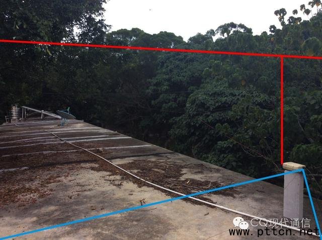 我甚至不會忘記帶饋線,因?yàn)闊o論是饋線和控制線都是直接安裝到天調(diào)里邊的。擴(kuò)展長度也非常簡單,網(wǎng)上早已經(jīng)有擴(kuò)展接口出售。在家中閑置的電線堆里,隨手剪一段13m的電源線備用。海島架臺的地方有較高的樹和民房,拉天線絕對不會有問題了,而且有高度。 海島上有一列一層高的平房,自東往西方向延伸、座北朝南。我們借來了梯子上到平房頂視察,有兩棵樹在西南和東北角,可以在之間架設(shè)天調(diào)的主輸出振子。