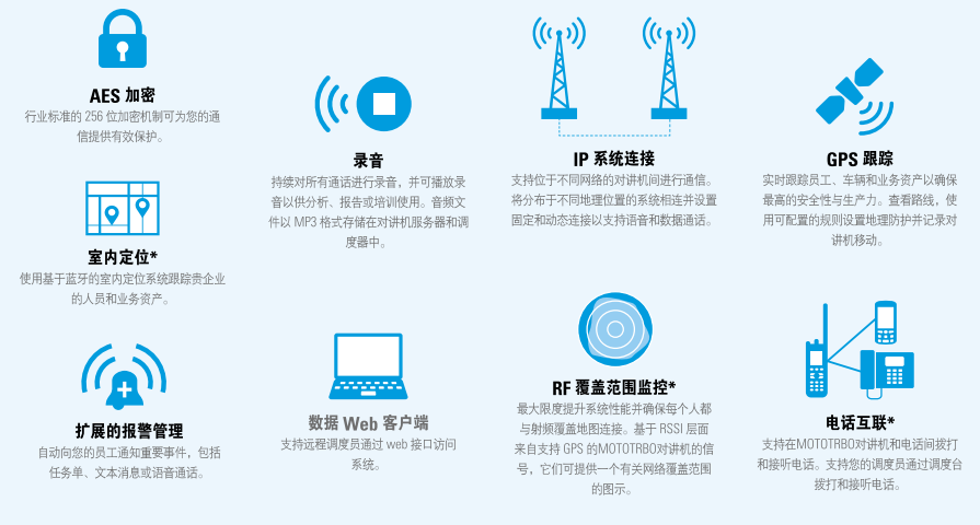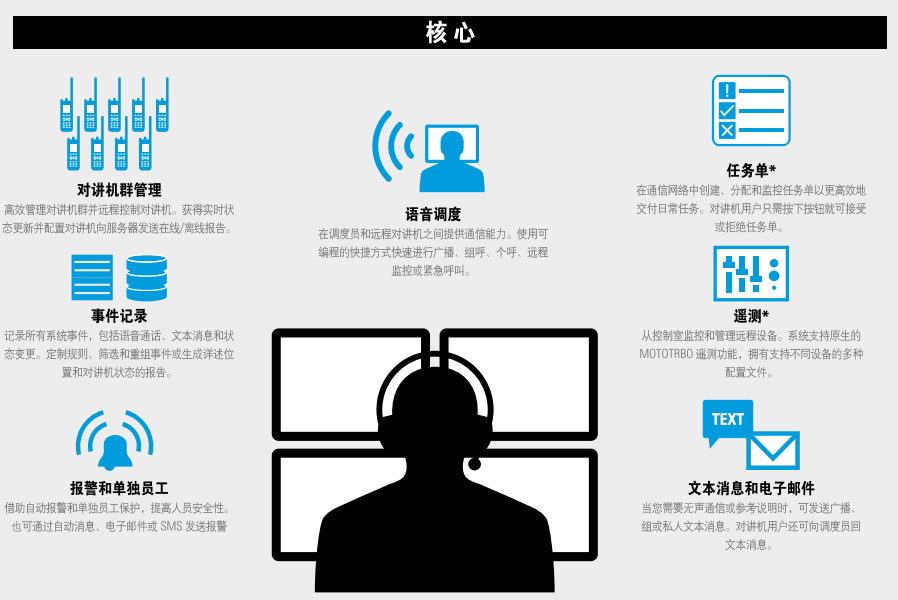 MOTOTRBO具有多種強大功能,完美結(jié)合了對講機功能與最新數(shù)字技術(shù)的優(yōu)勢,支持您在企業(yè)中進行即時通信。憑借著涵蓋對講機、配件、系統(tǒng)和應(yīng)用的全面產(chǎn)品組合,MOTOTRBO可助力您將安全性、生產(chǎn)力和效率提升到新高度。 該解決方案的IP連接功能還支持您將TRBOnet PLUS部署為分布式系統(tǒng),并按需將調(diào)度臺安裝在任何地方。高度可定制的用戶界面支持您以最適合自己的方式管理企業(yè)。該解決方案采用模塊化設(shè)計,因此您只需購買自己所需的功能即可。TRBOnet PLUS是您業(yè)務(wù)通信系統(tǒng)的核心,在設(shè)計上提供了卓越的可靠性。該架構(gòu)無單點故障,并提供了冗余以及分布式事件和語音數(shù)據(jù)存儲選項。