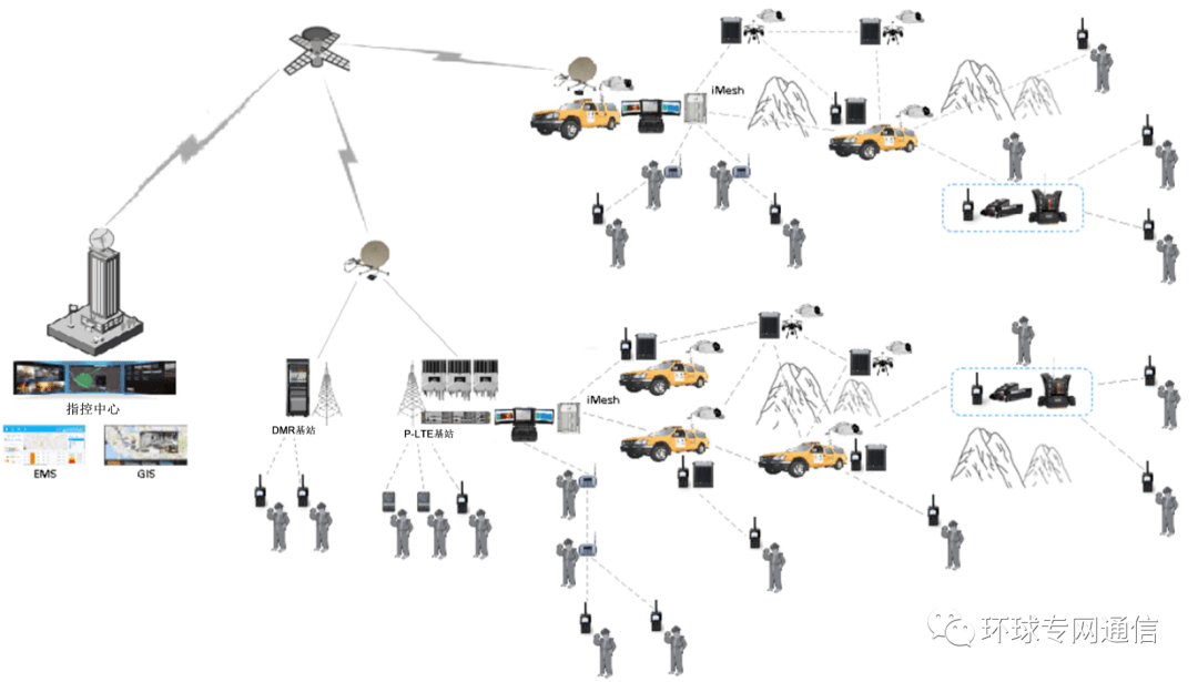 圖1:組網(wǎng)示意圖 ▏容災(zāi) 在發(fā)生地震、洪澇和森林火災(zāi)等自然災(zāi)害或突發(fā)事件時(shí),用于容災(zāi)的公共安全服務(wù)需要可靠的通信網(wǎng)絡(luò)。由于地面原有的網(wǎng)絡(luò)基礎(chǔ)設(shè)施和專(zhuān)網(wǎng)回傳鏈路可能損壞且無(wú)法使用,即使部分現(xiàn)場(chǎng)區(qū)域可實(shí)現(xiàn)內(nèi)部通信,但是與后方指控中心的通信仍舊無(wú)法建立。 后方指揮中心需要向?yàn)?zāi)害現(xiàn)場(chǎng)的前方指揮部提供現(xiàn)場(chǎng)指揮和調(diào)度。現(xiàn)場(chǎng)指揮部負(fù)責(zé)協(xié)調(diào)現(xiàn)場(chǎng)人員,在現(xiàn)場(chǎng)部署監(jiān)控?cái)z像頭、無(wú)人機(jī)以便了解現(xiàn)場(chǎng)通信的損壞程度等狀況,現(xiàn)場(chǎng)指揮部確定消息、語(yǔ)音呼叫和視頻的業(yè)務(wù)優(yōu)先級(jí)。 基于衛(wèi)星的專(zhuān)網(wǎng)通信可以通過(guò)IP業(yè)務(wù)立即為應(yīng)急響應(yīng)和急救人員提供通信服務(wù)。衛(wèi)星通信可以重新建立受損的通信鏈路,使現(xiàn)有系統(tǒng)恢復(fù)與指揮中心的連接,還可以利用額外容量部署新系統(tǒng)。 在發(fā)生突發(fā)情況時(shí),衛(wèi)星鏈路是回傳指揮中心的唯一連接,因此它必須能夠與現(xiàn)場(chǎng)的所有的專(zhuān)網(wǎng)通信系統(tǒng)配合使用,包括PDT、LTE或Mesh網(wǎng)絡(luò)。災(zāi)難現(xiàn)場(chǎng)的通信對(duì)于快速做出協(xié)調(diào)一致的響應(yīng)至關(guān)重要,而且 衛(wèi)星通信有助于在在地面基礎(chǔ)設(shè)施修復(fù)期間持續(xù)保障通信,提高救援效率。 ▏遠(yuǎn)程作業(yè) 許多采礦、建筑、石油鉆探或勘探營(yíng)地都在沒(méi)有地面通信網(wǎng)絡(luò)覆蓋的非常偏遠(yuǎn)的地區(qū)。衛(wèi)星通信是與總部通信連接的唯一途徑。營(yíng)地內(nèi)部以及在營(yíng)地外工作的人員通常使用窄帶對(duì)講機(jī)以及其他寬帶系統(tǒng)用于通信。 人員安全是首要問(wèn)題。將對(duì)講機(jī)同時(shí)連接到營(yíng)地及總部可大大提高安全性。衛(wèi)星回程還為日常運(yùn)營(yíng)提供通信。 專(zhuān)用通信系統(tǒng) ▏數(shù)字集群通信(PDT) PDT是專(zhuān)用移動(dòng)通信(PMR)的窄帶標(biāo)準(zhǔn),可通過(guò)PPT按鍵快速建立通信連接, 主要傳遞語(yǔ)音和短消息。PDT常規(guī)和PDT集群都是需要許可的數(shù)字通信標(biāo)準(zhǔn),使用2時(shí)隙時(shí)分多址(TDMA),兩個(gè)時(shí)隙均占用12.5kHz的帶寬。PDT常規(guī)使用獲得許可的常規(guī)對(duì)講機(jī)和中轉(zhuǎn)臺(tái),可以在廣泛的區(qū)域內(nèi)快速互連分散的站點(diǎn)。與PDT常規(guī)相比, PDT集群增加了集群功能,可以向用戶(hù)組動(dòng)態(tài)分配頻率,而且使用基站,因此效率更高,用戶(hù)容量更大。 在關(guān)鍵任務(wù)通信中,語(yǔ)音仍然是最主要的需求。在完成任務(wù)時(shí),必須立即傳輸災(zāi)難受害者的高質(zhì)量語(yǔ)音呼叫,作為從總部發(fā)出的第一優(yōu)先級(jí)指令,或者位于野外的與下級(jí)之間的語(yǔ)音和短消息。所有這些都可通過(guò)PDT系統(tǒng)實(shí)現(xiàn)。 PDT的優(yōu)點(diǎn)是一呼即通,可將撥號(hào)和呼叫發(fā)起的時(shí)間降至最低。 與專(zhuān)用LTE系統(tǒng)(P-LTE)相比,PDT基站的覆蓋范圍更大。 ▏專(zhuān)用LTE(P-LTE) PDT的缺點(diǎn)是它只能處理相對(duì)少量的數(shù)據(jù)業(yè)務(wù)。 P-LTE對(duì)于視頻流這樣的數(shù)據(jù)媒體服務(wù)既方便又高效,在需要更高的數(shù)據(jù)速率時(shí)可作為一種解決方案。通過(guò)衛(wèi)星承載的P-LTE傳輸數(shù)據(jù)的挑戰(zhàn)包括時(shí)延和有限的衛(wèi)星帶寬。在語(yǔ)音通信方面,借助LTE網(wǎng)絡(luò)語(yǔ)音業(yè)務(wù)(VoLTE)功能,語(yǔ)音呼叫可以作為數(shù)據(jù)流的一部分進(jìn)行傳輸。然而,與通過(guò)PDT系統(tǒng)進(jìn)行語(yǔ)音通信相比,通過(guò)寬帶P-LTE系統(tǒng)進(jìn)行語(yǔ)音呼叫的成本較高,可作為語(yǔ)音通信的第二選擇。 ▏Mesh Mesh是一種4G寬帶解決方案,具有智能數(shù)據(jù)路由功能,可以連接到衛(wèi)星、光纖、P-LTE和Wi-Fi。 Mesh既可以作為自己獨(dú)立的網(wǎng)絡(luò)運(yùn)行,也可以直接連接到衛(wèi)星鏈路或有線骨干網(wǎng)。當(dāng)無(wú)法部署光纖時(shí),Mesh可以用作固定或移動(dòng)基站的回傳鏈路,也可以連接到P-LTE網(wǎng)絡(luò)以擴(kuò)大覆蓋范圍,即使在深山等更地形復(fù)雜的偏遠(yuǎn)地區(qū)也適用。 Mesh由便攜式無(wú)線節(jié)點(diǎn)組成。這些節(jié)點(diǎn)可以安裝在墻壁和立桿上作為固定節(jié)點(diǎn),也可以安裝在車(chē)輛和無(wú)人機(jī)上作為移動(dòng)節(jié)點(diǎn)。自組網(wǎng)節(jié)點(diǎn)直接進(jìn)行無(wú)線組網(wǎng)以形成星形、鏈形、網(wǎng)狀或混合拓?fù)洹9?jié)點(diǎn)之間的鏈路自動(dòng)匹配建立。語(yǔ)音、視頻和數(shù)據(jù)傳輸在Mesh節(jié)點(diǎn)之間傳輸,與終端無(wú)線設(shè)備進(jìn)行通信。 基于衛(wèi)星的專(zhuān)用通信所面臨的挑戰(zhàn) 基于衛(wèi)星的PMR面臨的挑戰(zhàn)包括時(shí)延、抖動(dòng)、有限的帶寬和較差的鏈路質(zhì)量。為確保將衛(wèi)星流量、時(shí)延和抖動(dòng)降至最低,需要精確進(jìn)行網(wǎng)絡(luò)規(guī)劃,包括