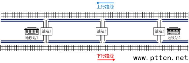 受到傳輸損耗的影響,每個基站覆蓋的隧道距離是有限的,如果兩個相鄰地鐵站的距離小于基站可覆蓋的最大間距,則只主要在兩邊的地鐵站內(nèi)架設(shè)基站(或RRU),即可完成站間隧道的覆蓋。如果相鄰兩個地鐵站的距離大于基站可覆蓋的最大間距,需要在隧道中間再假設(shè)一個或多個拉遠(yuǎn)基站(或RRU),如下圖的基站3。