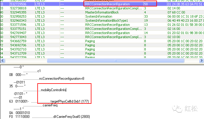 Ø包含securityConfigHO,則執(zhí)行切換 RRC connectionreconfiguration信令截圖: 修改無線資源: