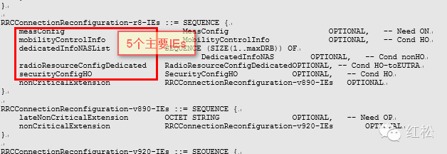 判斷一條RRC連接重配置具體作用,需要查看RRC connection reconfiguration中所攜帶的IE(信息單元),LTE R8中主要有如下5種IES(現(xiàn)網(wǎng)大多為R8版本):