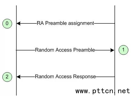 1)UE在RACH上發(fā)送隨機(jī)接入前綴; 2)ENb的MAC層產(chǎn)生隨機(jī)接入響應(yīng),并在DL-SCH上發(fā)送; 3)UE的RRC層產(chǎn)生RRC Connection Request 并在映射到UL –SCH上的CCCH邏輯信道上發(fā)送; 4)RRC Contention Resolution 由ENb的RRC層產(chǎn)生,并在映射到DL –SCH上的CCCH or DCCH(FFS)邏輯信道上發(fā)送。 基于非沖突的隨機(jī)接入: