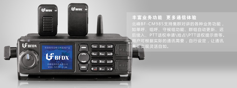 主頁(http://www.www.jjxinkai.com):北峰BF-CM985車載臺(tái) 通話操作so easy 北峰電訊,永遠(yuǎn)走在時(shí)代的前列,積極響應(yīng)時(shí)代的需求,旗下的BF-CM985車載臺(tái)就是順應(yīng)了現(xiàn)代化通訊形勢下的產(chǎn)物。此款產(chǎn)品很好的發(fā)揮了無線電通訊作用,通話操作方便快捷,在物流、貨運(yùn)、出租車、城市管理……各個(gè)領(lǐng)域都發(fā)揮了它無窮大的魅力。 北峰整合公眾網(wǎng)絡(luò)資源,采用開放式集群架構(gòu),推出的新一代公網(wǎng)車載臺(tái)恰好順應(yīng)現(xiàn)代通訊發(fā)展需要,這是其在無線通訊領(lǐng)域取得的又一次實(shí)質(zhì)性突破,將在更多領(lǐng)域發(fā)揮出色的無線通信作用。此款產(chǎn)品主要服務(wù)于物流、貨運(yùn)、出租車、城市管理、公共管理、醫(yī)療急救、建筑工程等行業(yè)用戶。 全國通信 無限距離 基于公網(wǎng)運(yùn)營商網(wǎng)絡(luò),突破傳統(tǒng)集群網(wǎng)絡(luò)覆蓋有限的瓶頸,輕松實(shí)現(xiàn)無限距離、全國通聯(lián)。 無線PTT/MIC 安全有保障. 創(chuàng)新性采用無線PTT,該按鍵可放置于車內(nèi)檔桿或手剎處、方向盤等地方;無線MIC配置,可放置于衣領(lǐng)或座位安全帶上,按住PTT鍵,直接進(jìn)行語音發(fā)射,實(shí)現(xiàn)真正意義上的釋放雙手,不違交規(guī),通信更加安全靈活。 GPS定位 成員動(dòng)態(tài)隨手掌握 支持GPS全球定位以及智能軌跡回放功能,靈活掌握一線人員的活動(dòng)位置、工作進(jìn)展等,全面提高團(tuán)隊(duì)協(xié)作效率。 通話清晰 安全保密 語音處理技術(shù),兼設(shè)噪聲抑制功能,語音清晰洪亮。語音加密功能,最大限度提高加密強(qiáng)度,保證應(yīng)急通話的私密性,可確保用戶尤其是集團(tuán)用戶通訊使用安全。 大尺寸高清彩屏 實(shí)用性強(qiáng) 友好的人機(jī)交互界面、鍵盤設(shè)計(jì)、大尺寸高清彩色顯示屏,即使在戶外強(qiáng)光下也可對(duì)所有信息一目了然,方便用戶操作和通話。 語音電話功能 快捷方便 具有語音電話功能,可進(jìn)行撥打和接聽電話,有5種方式可撥打電話,通訊體驗(yàn)更豐富,操作更便捷。