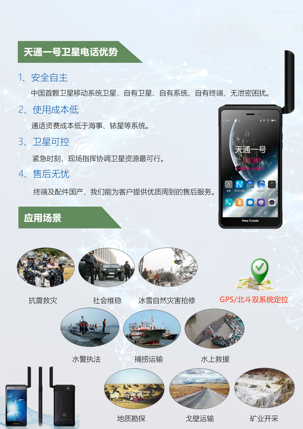 天通華力創(chuàng)通HTL-2200衛(wèi)星電話具有雙卡雙待,地面全網(wǎng)通與天通衛(wèi)星網(wǎng)絡(luò)無縫切換,采用Andriod6.0操作系統(tǒng),可加載用戶定制App,5.5英寸觸摸屏,操作便捷,64GB機(jī)身存儲(支持?jǐn)U展,最大128GB,高話音質(zhì)量,長續(xù)航能力,三防..